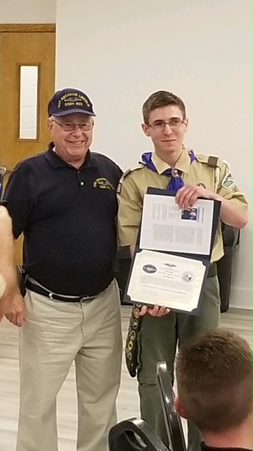 USSVI Certificate of Achievement presented to Eagle Scout Edgett, 1 March, 2008