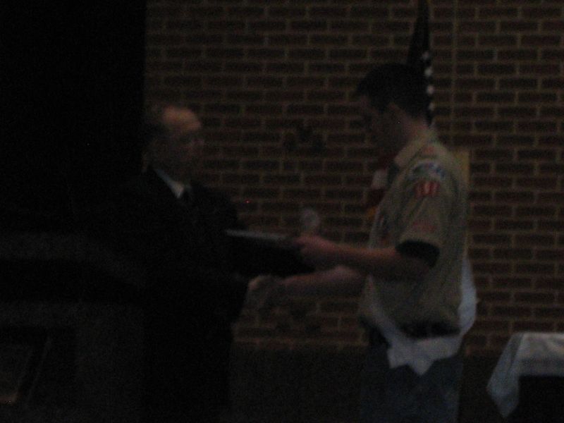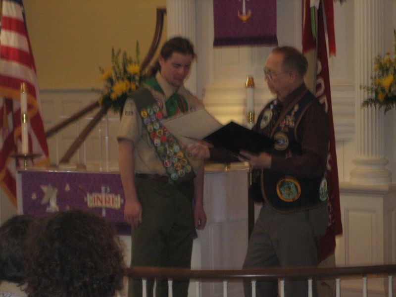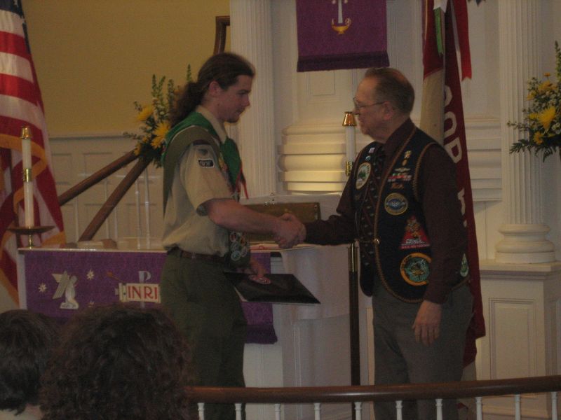 USSVI Certificate of Achievement presented to Eagle Scout Mayer, 13 January, 2008