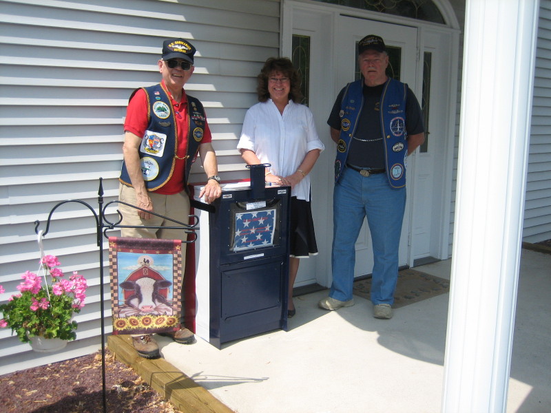 Base Cdr Rich Holmes, Vena Ackerman , Proprietor of The Flag Store, Bob Smith.